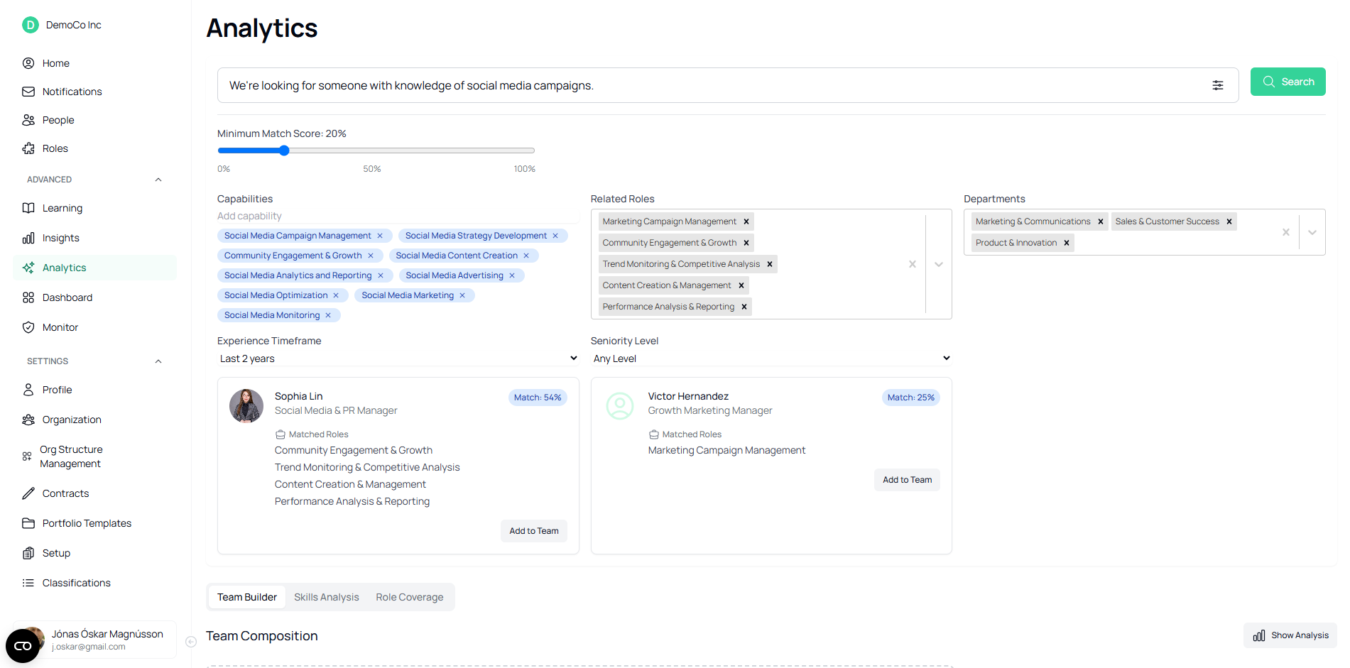 Live organizational intelligence that provides instant insights into performance, gaps, and opportunities.